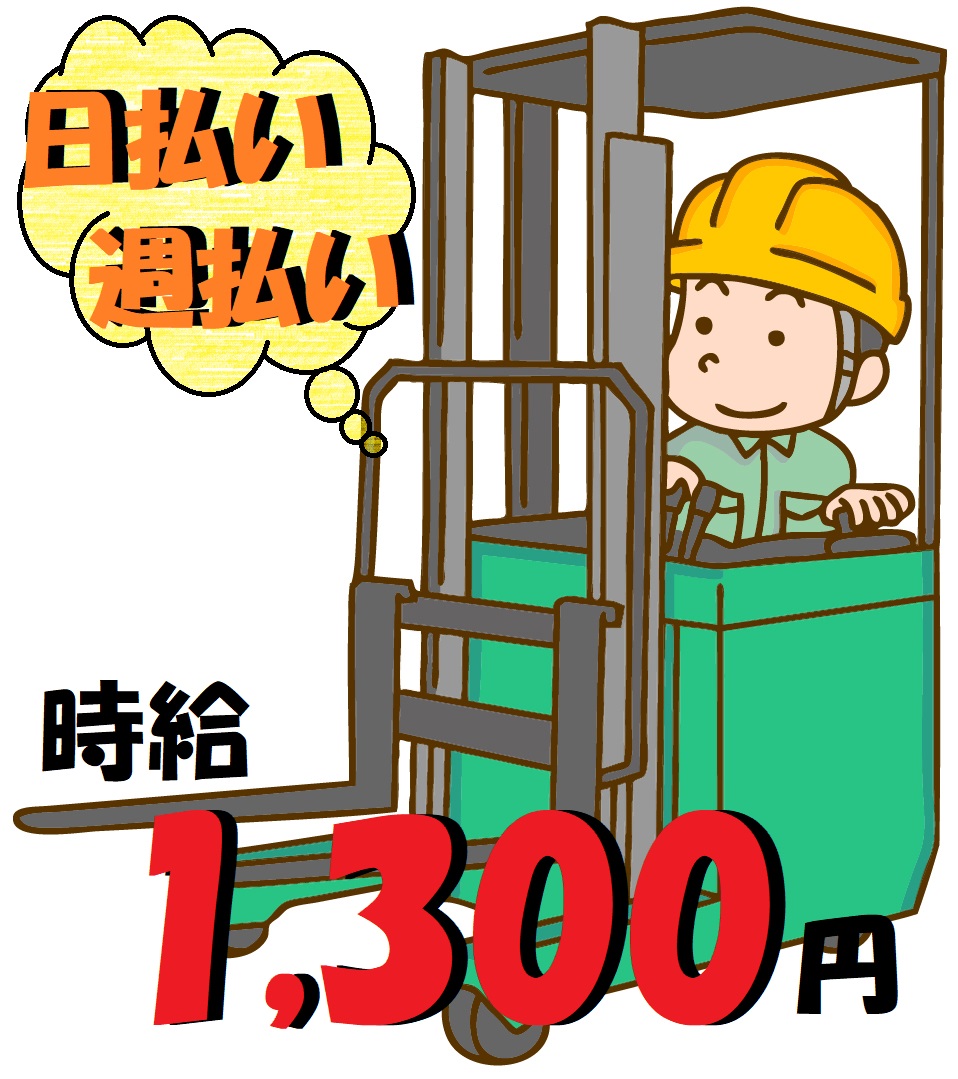 給与 | ▼時給:1,300円+規定交通費支給 ※日払い・週払いOK(規定有) |